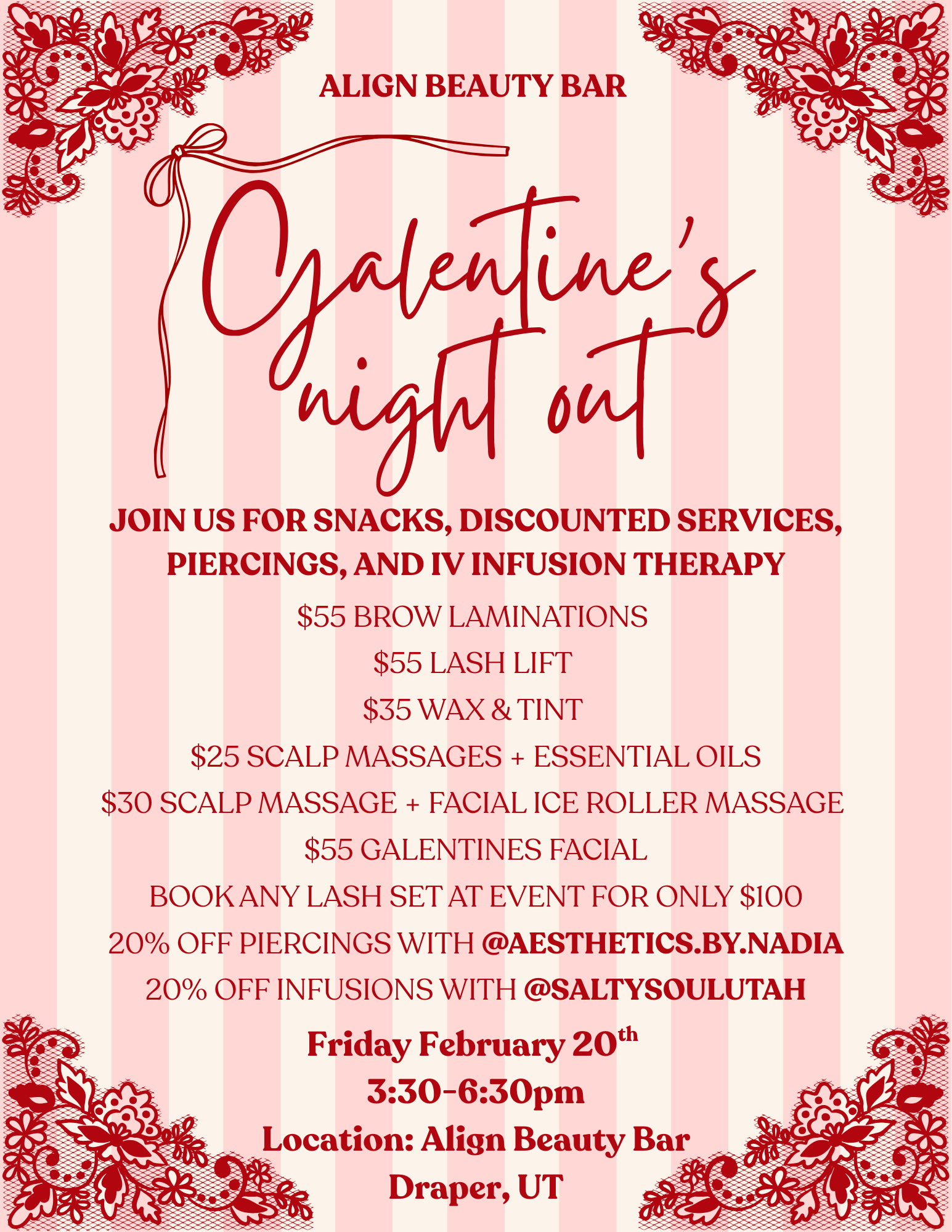 To book online select your Galentines service and select the date of the Event, 2/20/2026!